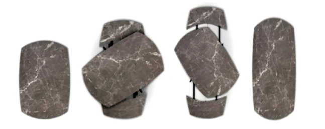 - The rotating system extracts the two semi-oval extensions to both ends, extending the table to 79’’ the longest rotating table on the market!